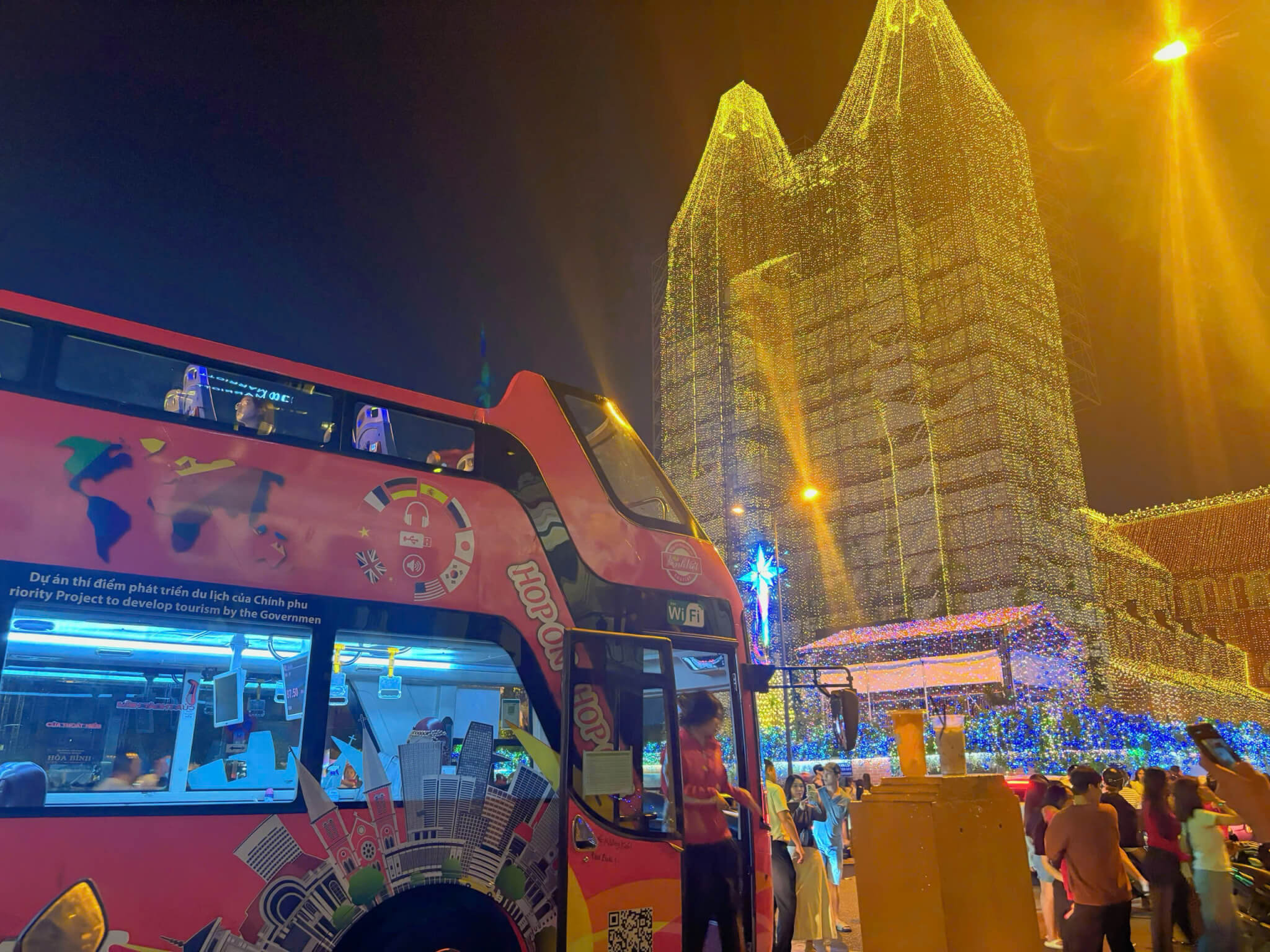 - Travelers will explore Ho Chi Minh city late at night on a double-decker bus, pass by the most beautiful streets of the city, from District 1 to Ba Son Bridge connecting Thu Duc City then come back to District 3, so you can freely admire the tourist attractionsand symbols of the City with their shimmering appearance at midnight and in the early morning such as The City Hall, Opera House, Western Area – Bui Vien Walking Street, Saigon Central Post Office, Notre-Dame Cathedral, Ba Son Bridge, Ben Thanh Market, Bitexco Tower, Saigon River – Bach Dang Pier…Enjoy audio guide to local landmarks in multi languages: English, French, German, Spanish, Russian, Japanese, Korean, Vietnamese.