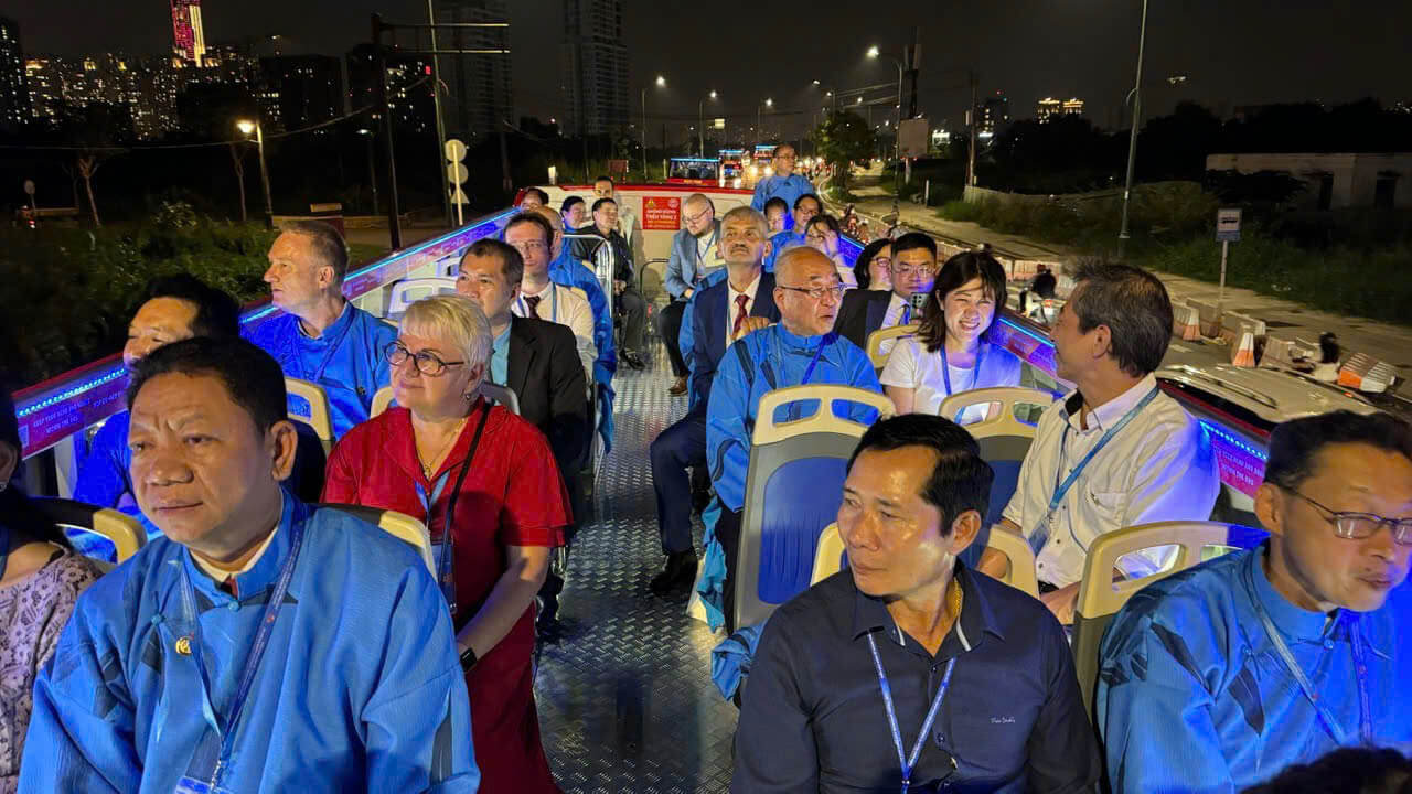 - Ignoring the hustle and bustle of the day, travelers will explore Ho Chi Minh city late at night, pass by the most beautiful streets of the city and cross Ba Son Bridge to see Ho Chi Minh City at night from Thu Duc City. Travelers can feel the pace of life of the Saigonese in a slightly quiet, but not too deserted atmosphere. From the open-top of a double-decker bus, tourists enjoy cool moments, the wind blowing through the hair, inhaling the smell of grass and trees in the night dew, immerse yourself in charm of the city that seems to never sleep. The double-decker bus will take you through City center routes from District 1 to Ba Son Bridge connecting Thu Duc City, then come back to District 3, so you can freely admire the tourist attractions and symbols of the City with their shimmering appearance at midnight and in the early morning such as The City Hall, Opera House, Western Area – Bui Vien Walking Street, Saigon Central Post Office, Notre-Dame Cathedral, Ba Son Bridge, Ben Thanh Market, Bitexco Tower, Saigon River – Bach Dang Pier…You also reach out the entertainment spots and food shops opening all night. If hopping on the bus early in the morning, you will have chance to watch the sunrise in the city, enjoying the fresh morning air and the wonderful new-day landscape of Ho chi Minh City.